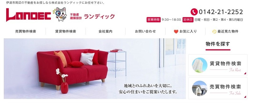 伊達市・洞爺湖町・豊浦町 (株)ランディック 詳しくはこちらから 会社概要 名称 株式会社ランディック 住所 〒052-0023 伊達市元町11-2 電話番号 0142-21-2252 ホームページ https://www.landec21.co.jp/ 地図 この会員に電話する