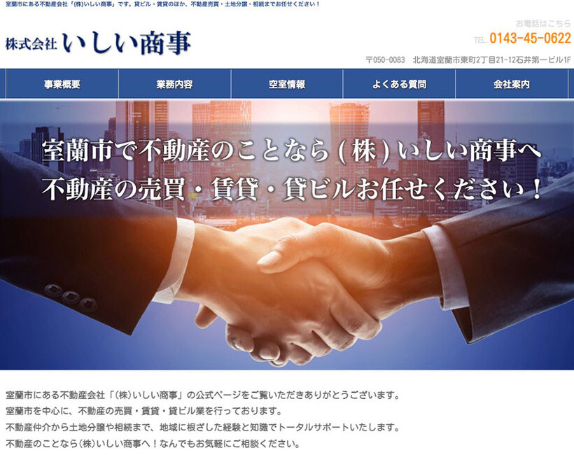 室蘭市 (株)いしい商事 詳しくはこちらから 会社概要 名称 株式会社いしい商事 住所 〒050-0083 室蘭市東町2-21-12 電話番号 0143-45-0622 ホームページ https://ishiishoji.com/ 地図 この会員に電話する